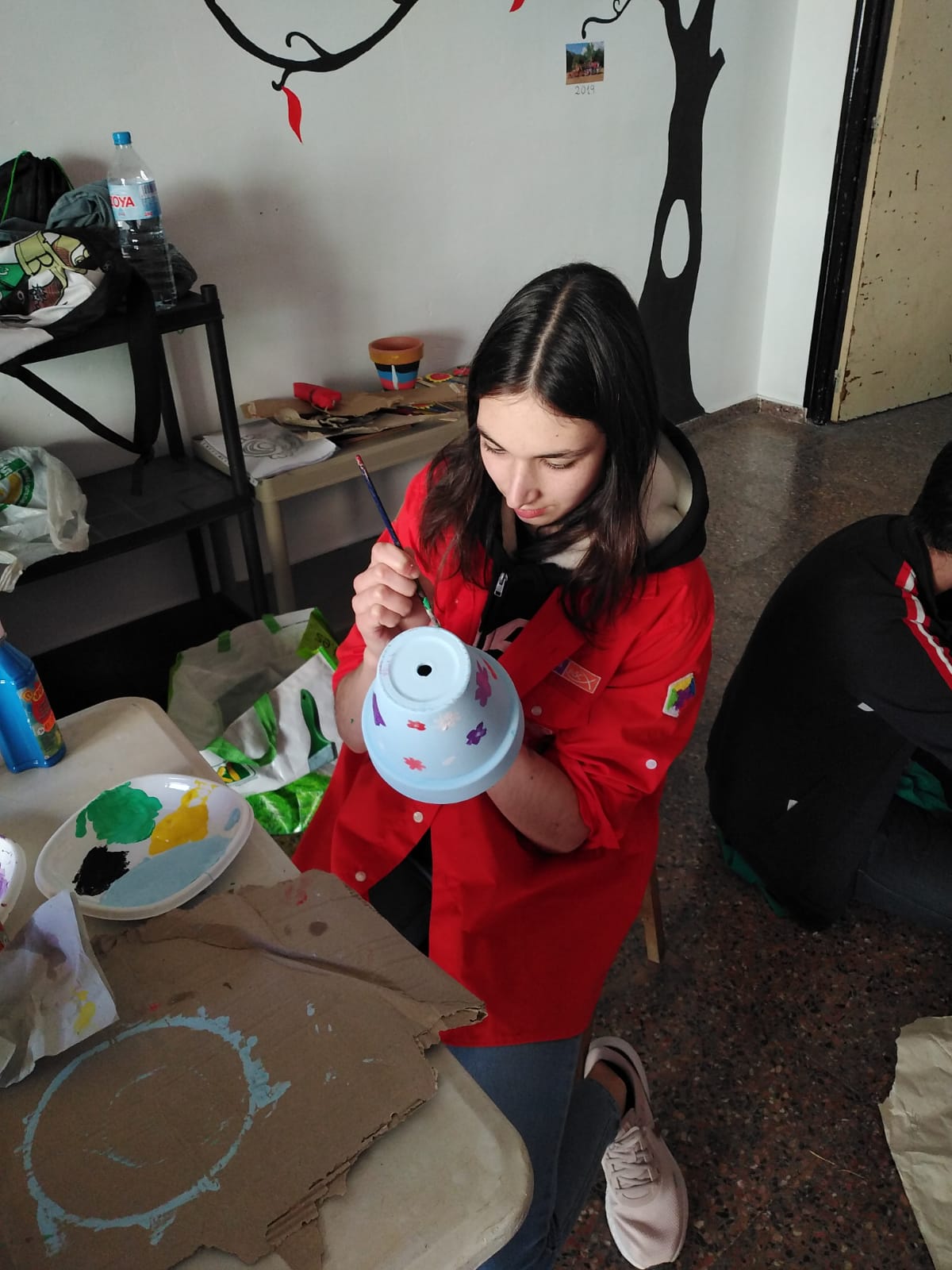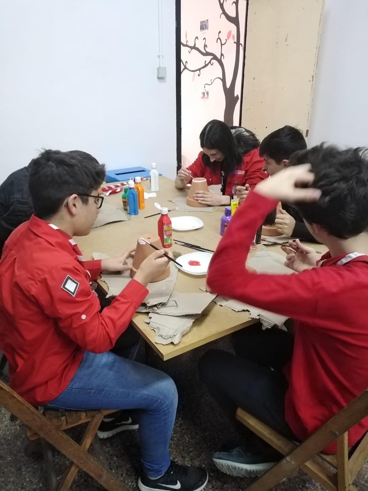Como ya sabéis nuestra empresa de este año es «la red del cambio» y para poder llevarla a cabo decoramos unas macetas y plantamos plantitas en ellas. Durante la tarde las estuvimos vendiendo.